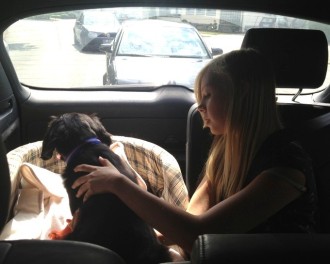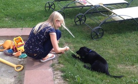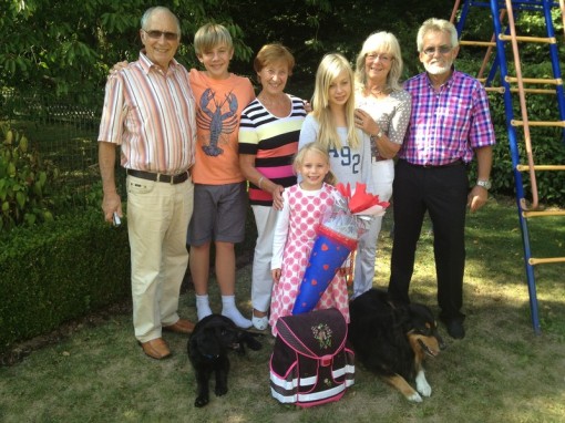 Ich mit Mika und meinem Frauchen mit Geschwistern und Großeltern.