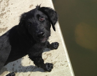 Mit Mika und Frauchen zum 1. mal an einen Bach! cool!